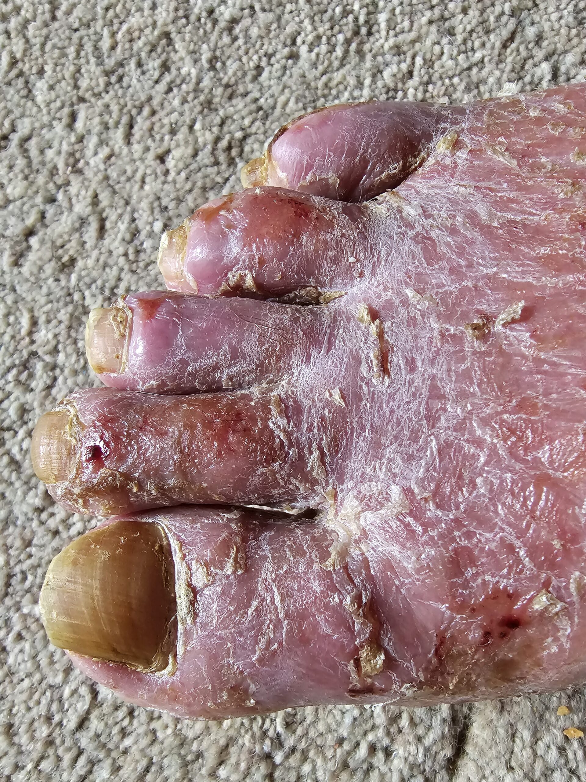 Kleines Beispiel – mit diesem Fuss im nachstenenden Bild, habe ich noch gearbeitet – erst als ich keine Schuhe mehr anziehen konnte – ging ich zum Arzt, dass man den Fuss noch retten konnte, war ein Wunder.